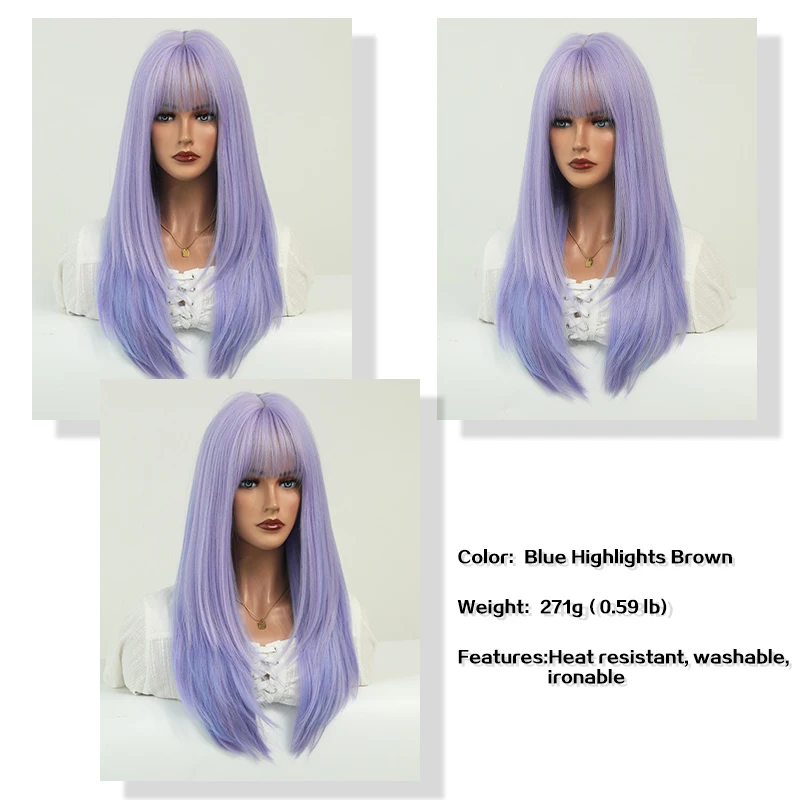 Name:7JHH WIGS Long Wavy Purple Synthetic Wig for Women Daily Cosplay Party Natural Resistant Hair Wigs with Bangs Ombre Wigs